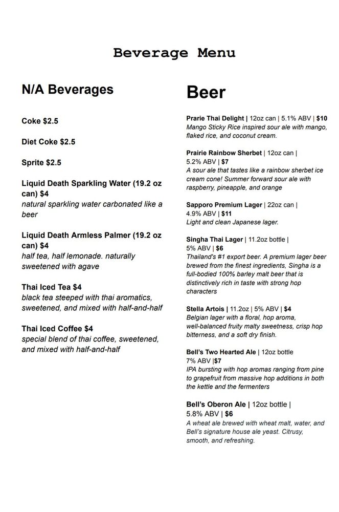 Black tea steeped with thai aromatics, sweetened, and mixed with half-and-half.